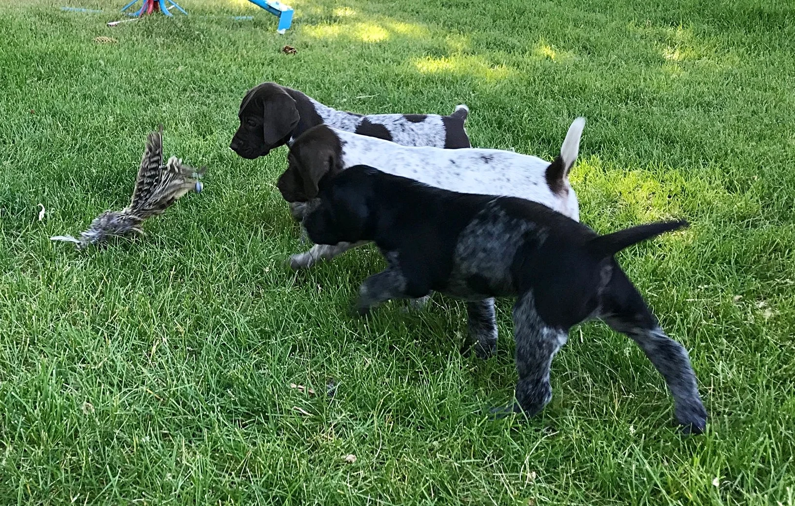 We have had Remi from birth - one of the pitchers below shows her and her two sisters. She had us from day one and continues to be a great member of our family, we love to be out in the field with her or on the couch to snuggle at night.