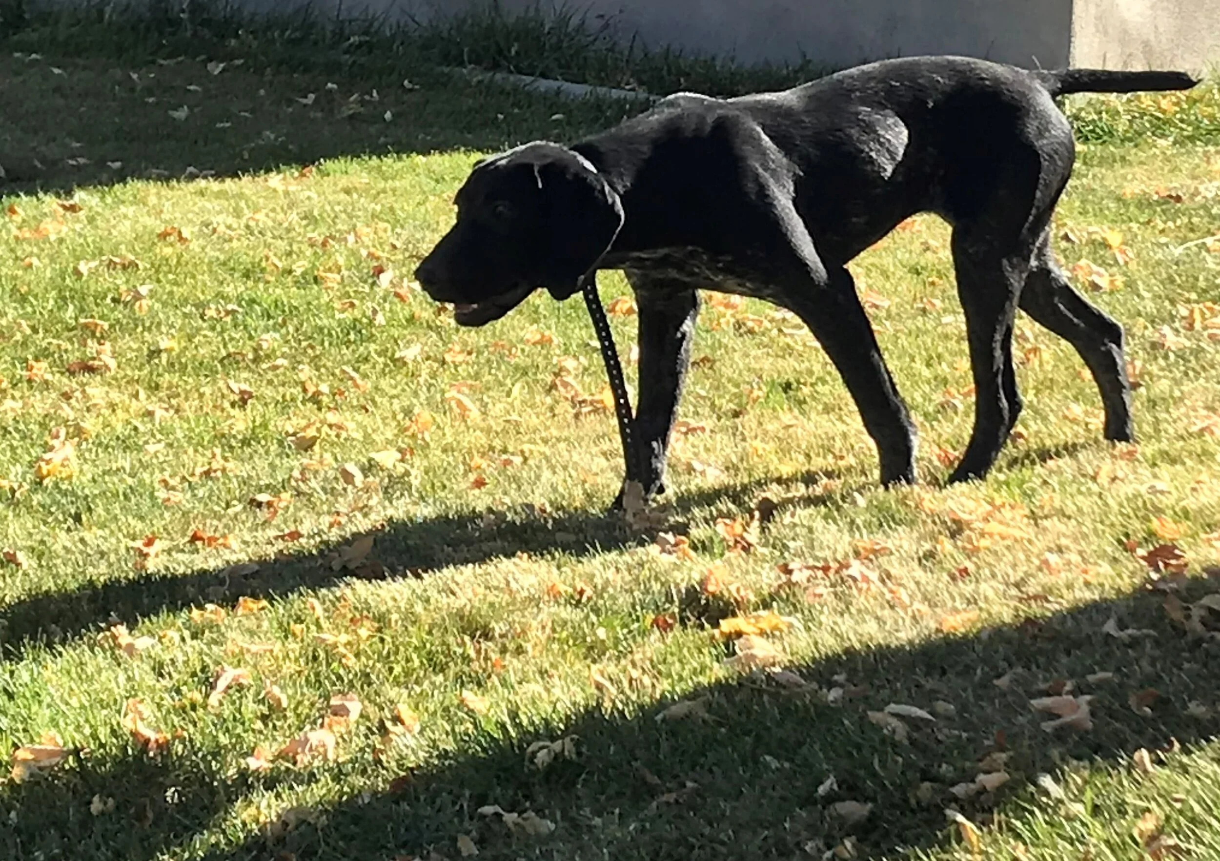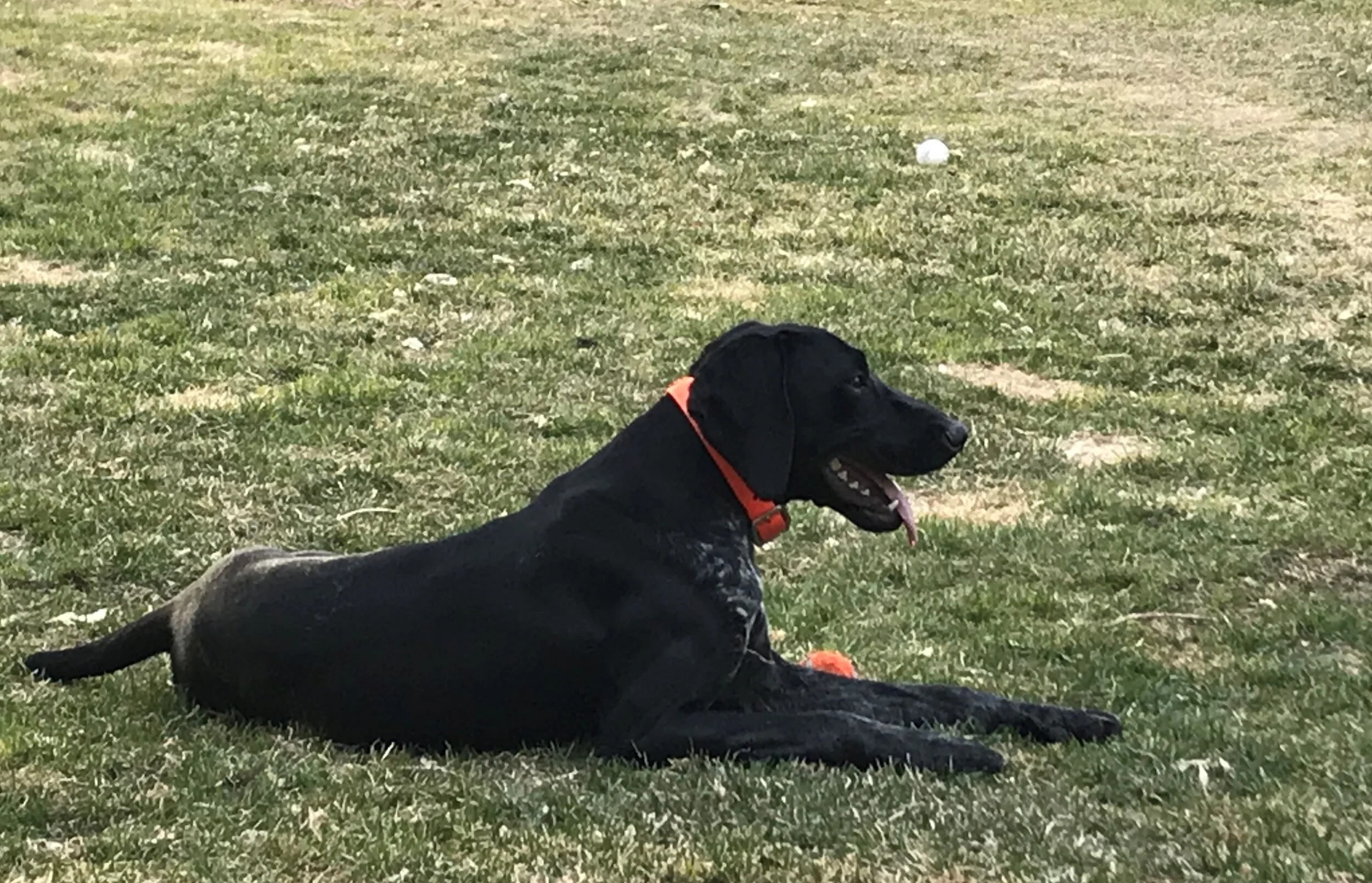 Remi is our black and roan German Shorthair Pointer. She is an excellent family dog and a great hunter. She is energetic and loves to play fetch as long as someone is willing to keep throwing her ball. She loves to learn and knows many tricks.